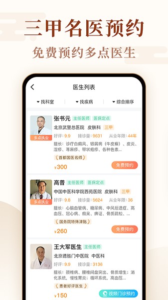 拥有各种医院资源,寻找各种三甲医院并选择预约的医院。