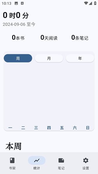 3、返回到主页,点击下方的统计,即可看到选定时间内我们阅读的书籍数据了。