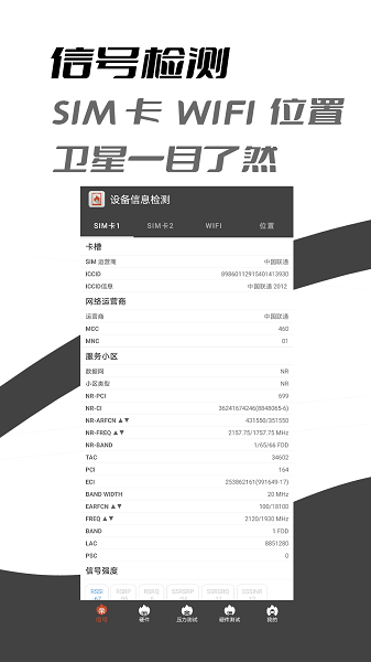 SIM卡信号检测、WIFI信号检测、移动网络、GPS位置信息检测 )