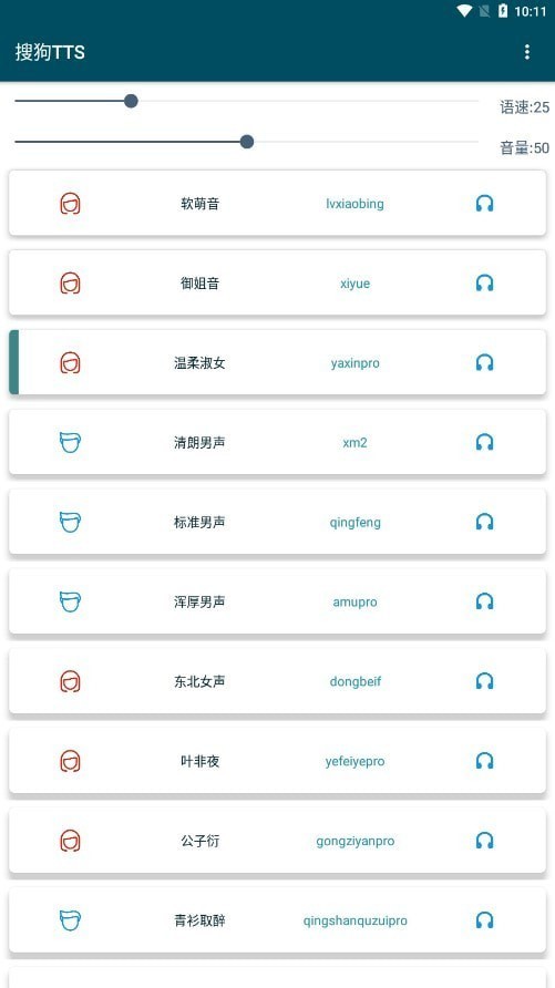 3、调整语音参数:搜狗TTS提供了多种离线语音包供用户选择,包括软萌音、御姐音、清朗公子音等。用户可以根据个人喜好调整语速和音量,以达到最佳的听书体验。