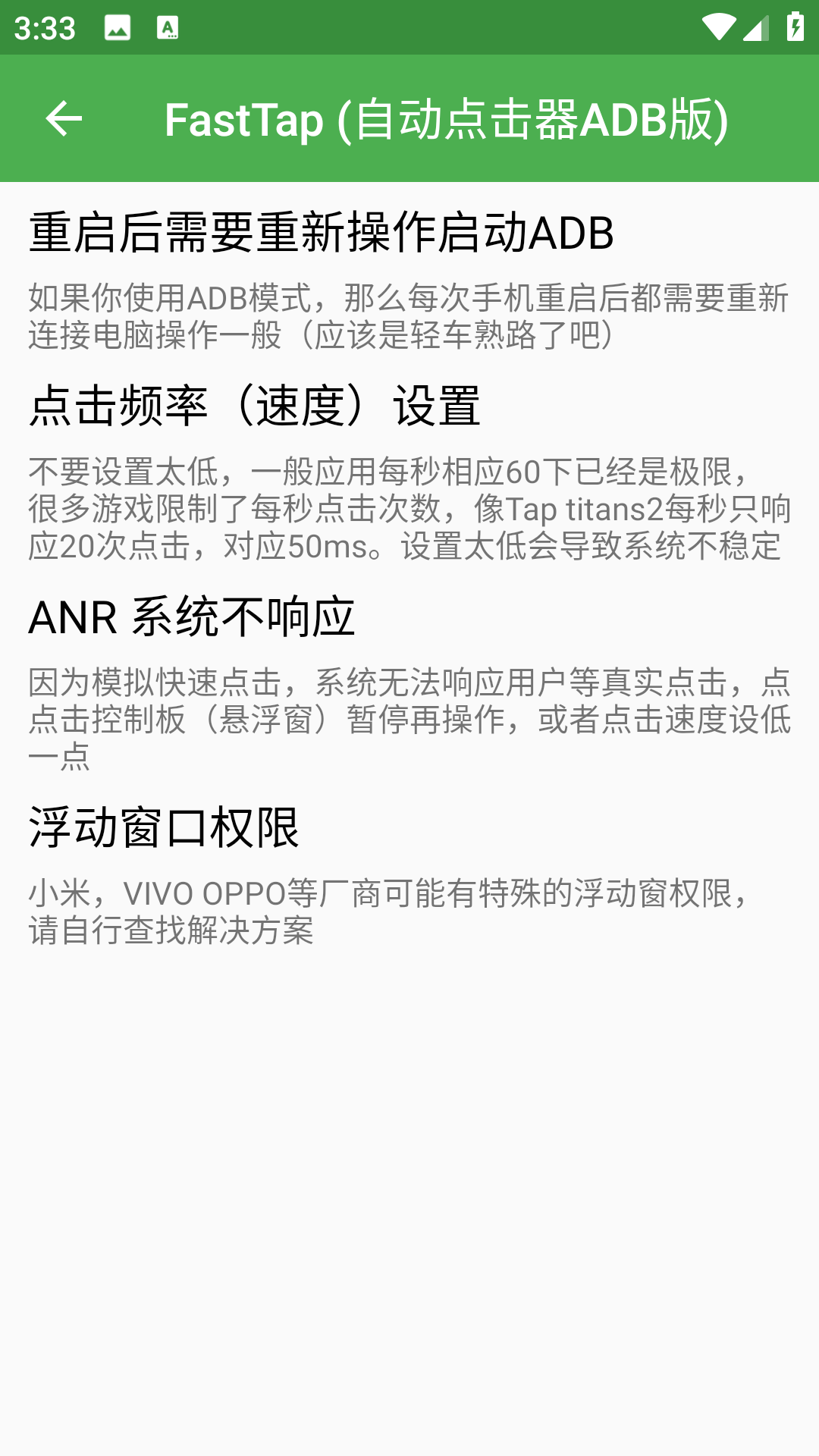 如果你改变你的工作窗口,FastTap会自动停止点击。