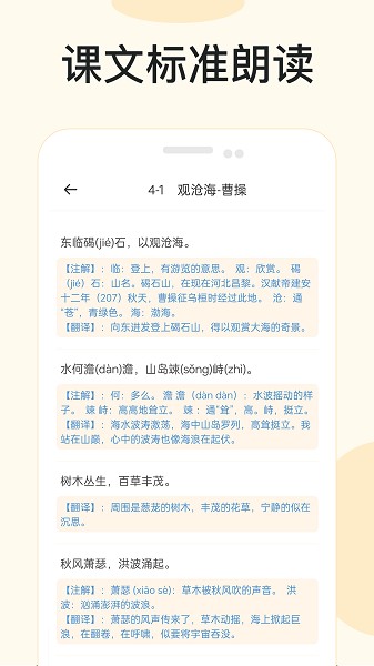 播音员倾情录制,标准示范诵读,让你的读音更标准,课文理解更透彻。