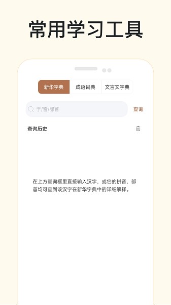 新华字典、成语词典、文言文词典。全部支持离线查询。