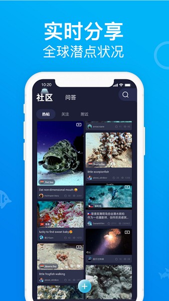 1、为大家带来了潜水爱好者社区,全球各地的潜水爱好者都可以互相的交流。