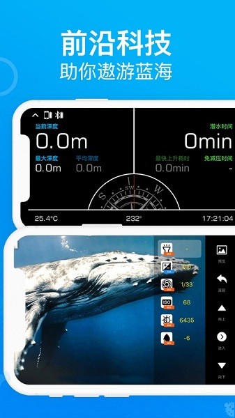 真的很实用。结合手机潜水壳,我们在拍照界面实时显示你的当前深度,上升速度等,不用再手忙脚乱的一边拍照一边看电脑表;当然,在你不需要拍照时,我们也提供纯净的电脑表界面。
