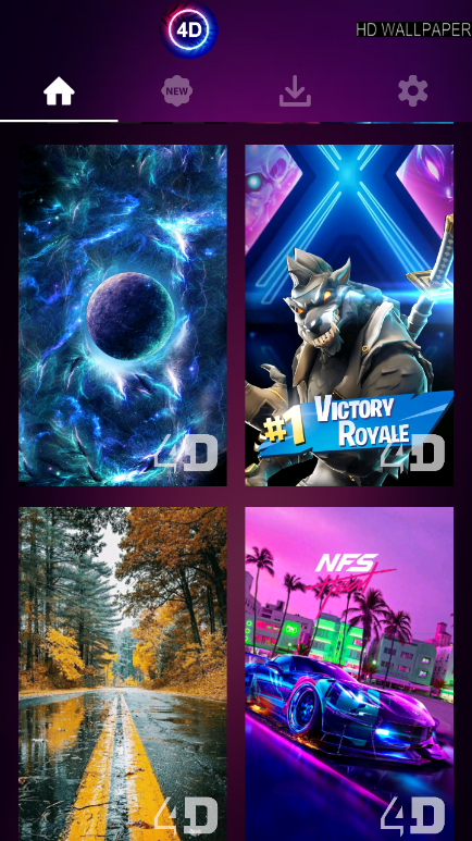 HD WALLPAPER 4D软件为大家带来了超多的壁纸资源,各种壁纸的画质都非常的清晰,在大屏幕上使用都没有任何的模糊。日常可以根据自己的喜好自由分类筛选壁纸,最新上架的壁纸都可以及时的进行查看,怎么保存大图都行。