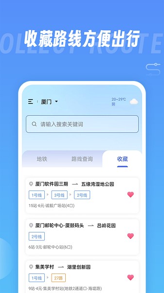 一键收藏出行路线,方便出行,每次查看收藏的路线很方便。