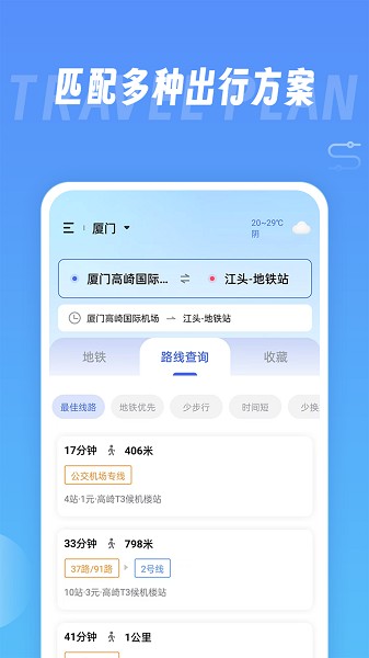 地铁路线随时查询,提供多种换乘方案供您选择,离线也可查询。