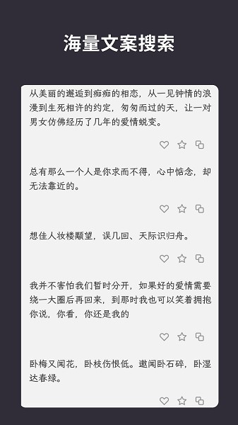 1、平台上带来了多种多样的文案素材,能够快速查阅文案,很方便。