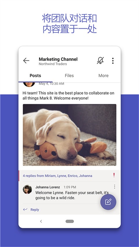 Teams集成了Word、PowerPoint和Excel等微软Office应用,方便团队成员实时查找、共享和编辑文件。