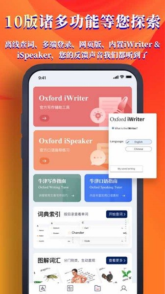 1、线上整合了大量的单词,可以随时查询不认识的单词,及时查看。