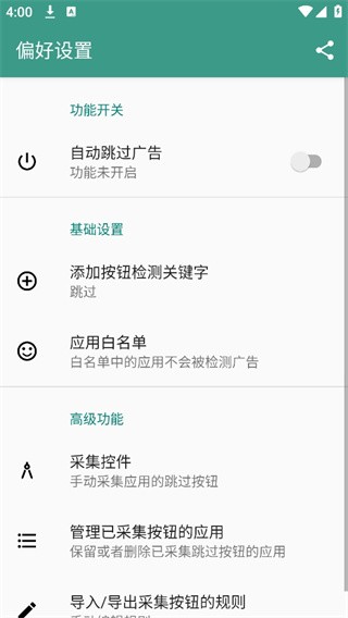 4、采集广告控件信息:按照软件提示,打开采集悬浮窗口,并在出现广告时保存控件信息,以便雷跳跳能够准确识别并跳过广告。