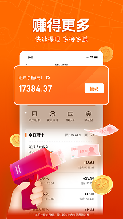 支持提现功能,骑手可以将收入提现到银行卡或支付宝等账户。