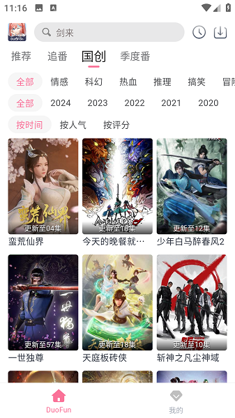 DuoFun动漫app为大家带来了海量的动漫资源,在这里都可以免费的进行播放,无论是日本动漫还是国产动漫这里都有收录的,每天都在不定时的进行更新中。线上可以输入关键词搜索相应的动漫,都可以轻松的找到,怎么播放都行。