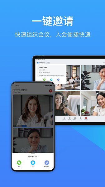 WPS会议支持在手机、电脑、Web等平台快速发起、加入会议,入会方便、快捷、无需等待。