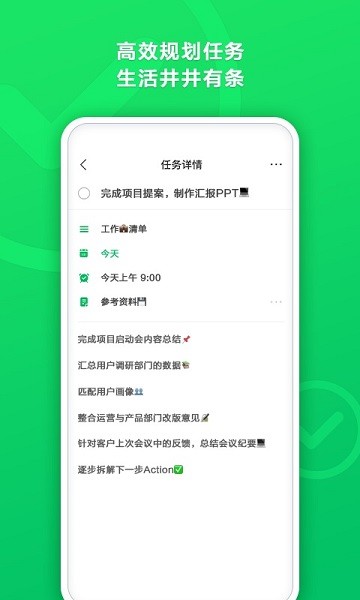 2、支持添加任务、创建清单列表以及设置提醒,轻松制定项目计划和安排行程。