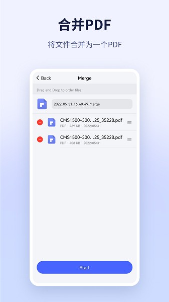 2、可以让大家一键合并多个PDF文件,生成新的长文档,简化文档整理过程。