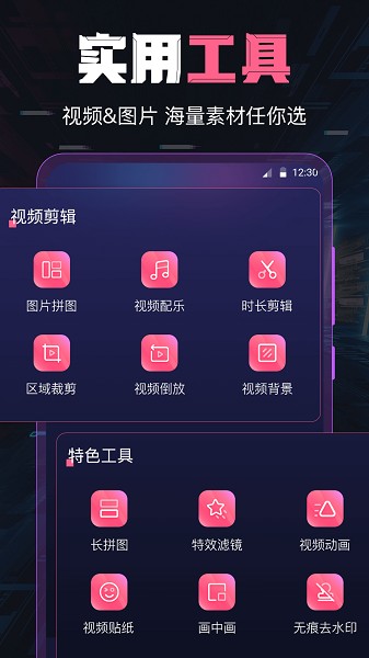 1、海量视频模板,不断更新提供当下热点,爆款视频,种类繁多,可爱型、萌宠型、黑暗风