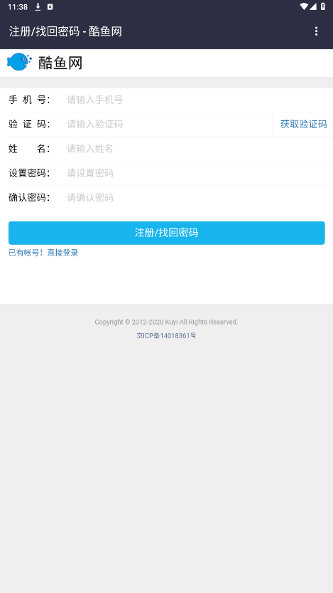 1、登录账号:使用在酷鱼网上注册的账号信息登录到该平台。