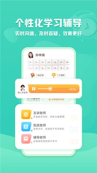 导师全程跟踪孩子的书法练习情况,提供一对一的在线辅导服务。