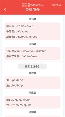提供长元音、短元音、双元音、清辅音、浊辅音等实用的语音分类学习。