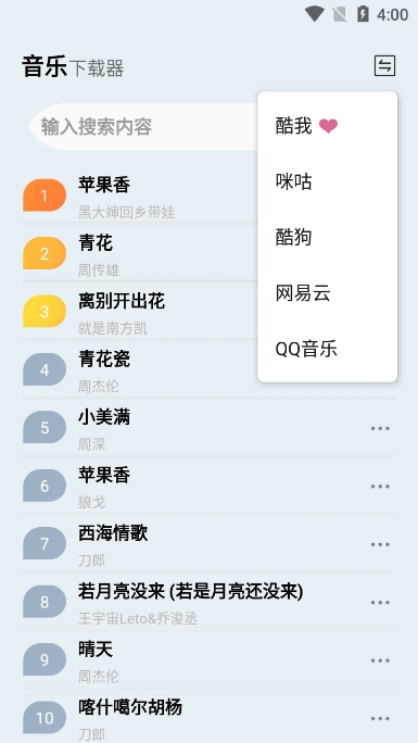 2、点击右上角的切换按钮可以自由切换各个平台的音乐库。