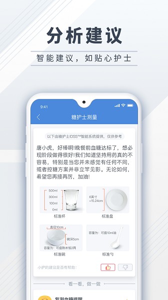 2、结合了智能手机血糖仪设备,帮助患者便捷地进行饮食、运动、用药、知识学习和血糖监测。