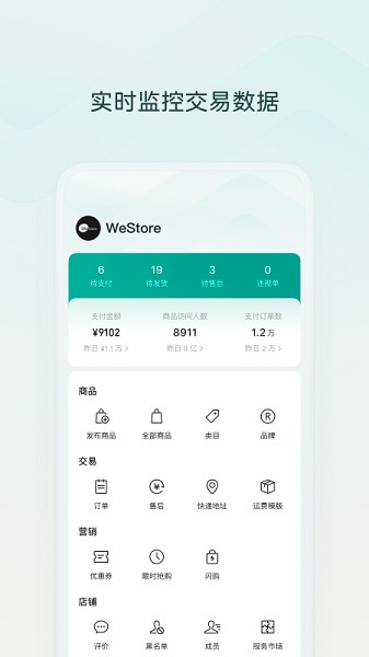 3、能够随时随地管理商品信息、处理订单、实施营销活动,还有详细数据报表