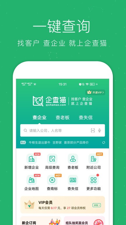 企查猫是一款功能强大的企业信息查询工具,旨在为用户提供全面、有效的企业大数据查询服务。用户通过输入公司名称或个人姓名等关键词,可以快速获取相关公司信息,可以查询企业信息,并与企业信息同步数据。用户只需输入公司名称或人名即可查询,外部信息包括股权结构、商标、资信等,只需输入需要检索的企业名称或名称即可,通过人名,可以快速查询公司的工商信息、对外投资、股权结构、商标专利、司法程序、关系图谱等,有需要的用户直接下载就可以开始体验了。