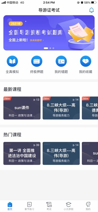 涵盖了导游证考试的所有的学习内容,满足你在线学习的需要。