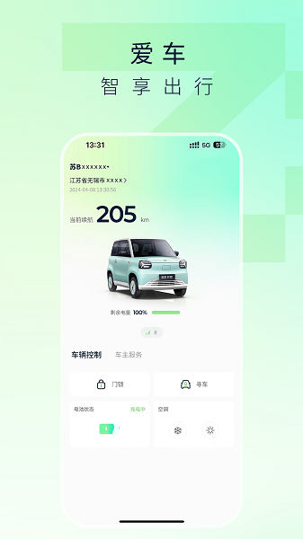 与汽车进行连接以后,就可以掌握汽车的充电和续航情况。