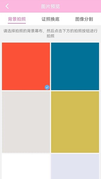 目前有6中纯色供您选择自拍证件照,涵盖过国内主流证件背景的要求。