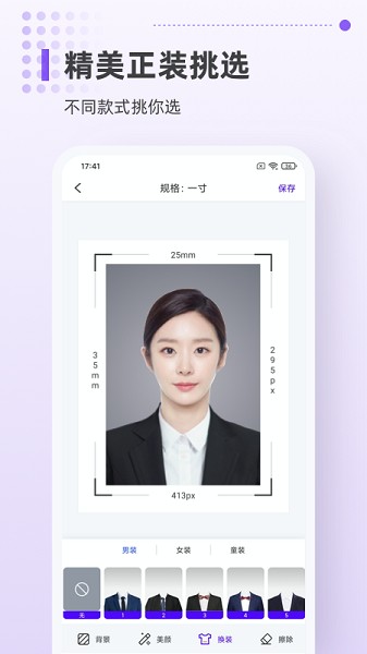 3、多种尺寸的证件照模板,可以保存为一寸照、二寸照、护照照片等。