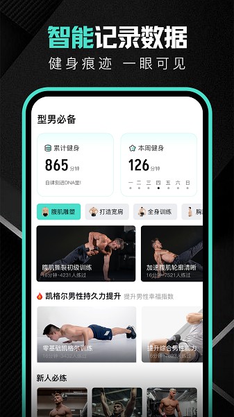 无论你想要增肌、减肥、还是只是想要保持健康,我们都可以帮助您训练打卡,健身历程全程跟踪,见证你每天的进步;有趣成长体系,训练不再枯燥,激励自己获得无穷动力。