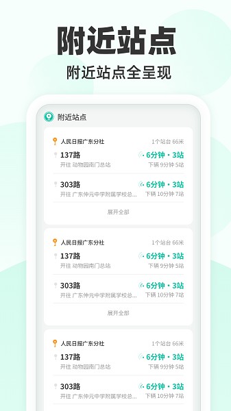 自动识别并显示附近的公交站点,方便用户迅速找到上车地点。