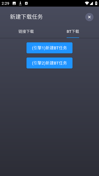 此外,该应用提供了三种调用方式进行下载,用户可直接复制下载地址进入新建任务页面,或在手机任意浏览器中点击磁力链接,也可以在手机文件搜索APP内点击磁力链接,都会自动弹出本APP进行下载。
