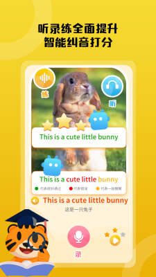 支持听、读、练等多种学习方式,通过听故事、跟谱朗读、听声音看图等互动环节,巩固孩子的英语学习成果。