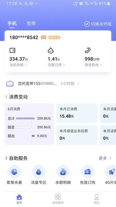 3、基础业务可自助在手机上完成,无需费时费力拨打客服电话或前往营业厅。