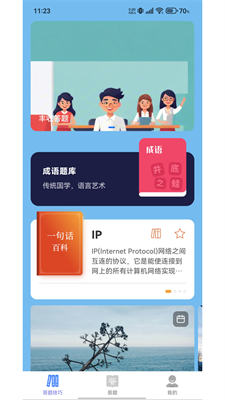 2、知识积累:通过回答问题,用户可以不断积累各种知识,开阔视野、增长见识。 同时,软件还会根据用户的回答,智能推荐相关学习资料和扩展内容,帮助用户更深入地了解每个知识点。