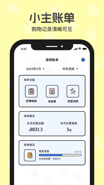 宠物的每一分花销都是你对它满满的爱,吃喝玩乐,记录你给它的所有;