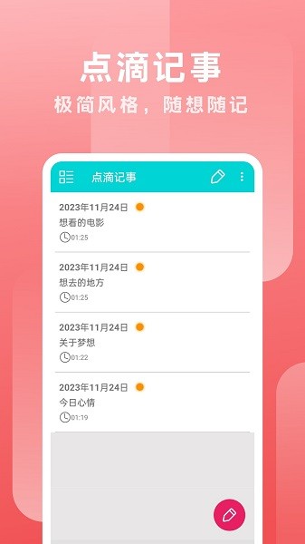 在线一键创建笔记,就可以随时随地的在线自由记录事情。
