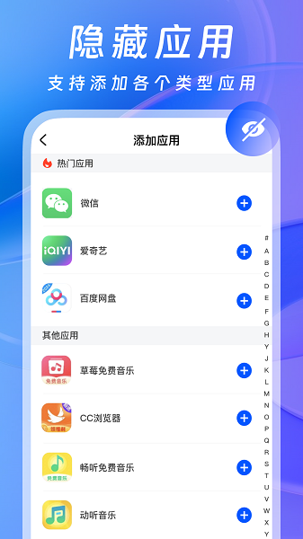 帮助用户隐藏软件的图标,让别人找不到隐私的软件。