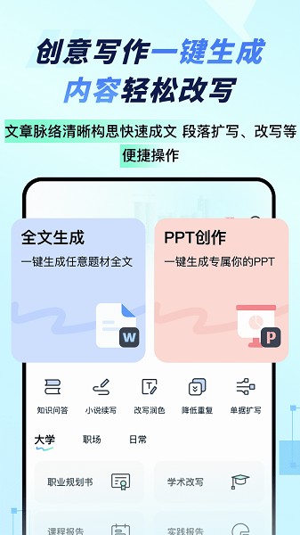 2、无论是撰写文章、作文、论文,还是需要创意写作和批改,这里都支持。