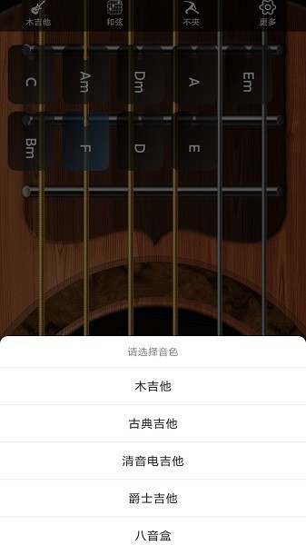 丰富多彩的音色库包括木吉他、古典吉他、电吉他、贝斯、钢琴等音色。