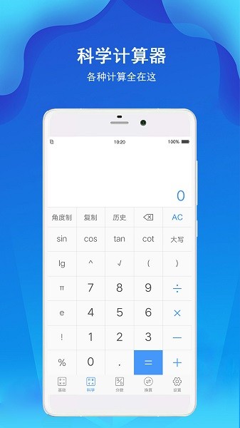 高效的基础计算器之外,支持三角函数、弧度制、常量等计算器。