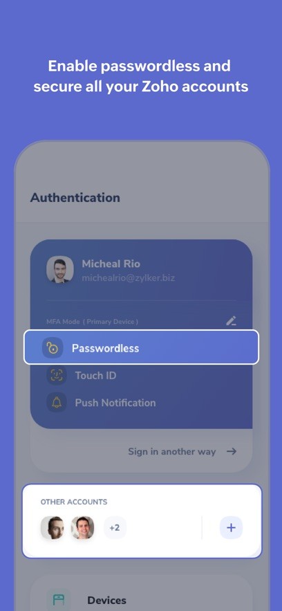 无密码登录将在不影响安全的情况下,加快您访问 Zoho 应用的速度。