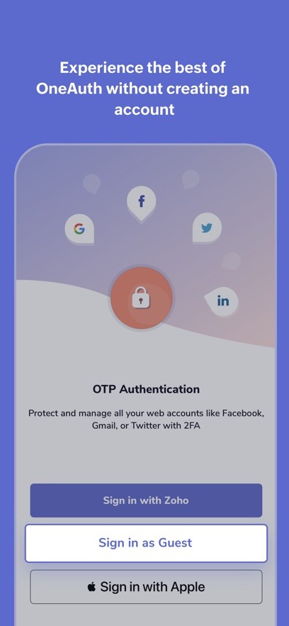 使用 OneAuth 登录一次,便可访问您所有新安装的 Zoho mobile 应用,而无需重新验证。