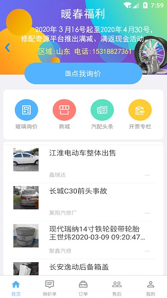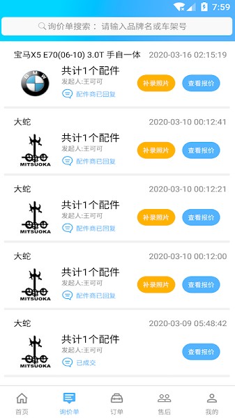 1、修理厂可以轻松上传采购清单,之后会提供详细的在线报价,简化采购的流程。