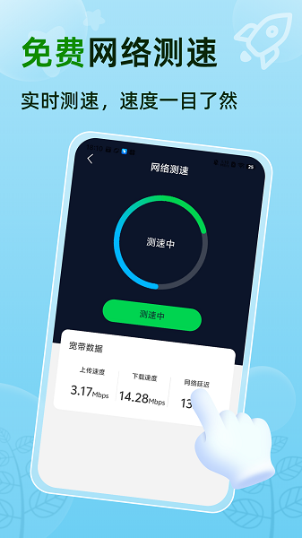 快速测量当前网络速度,详细展示下载、上传速率,让您时刻掌握网络“速度”,秒懂当前网络情况。