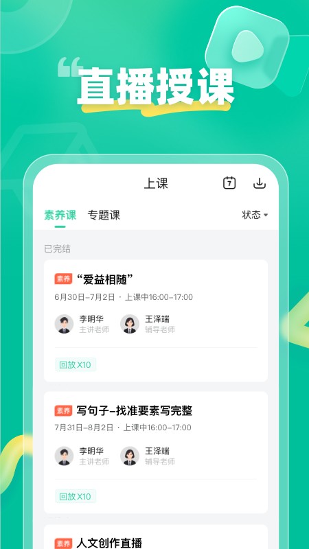 1、提供丰富的在线直播课程,涵盖素质教育的各个方面,帮助学生全面发展。